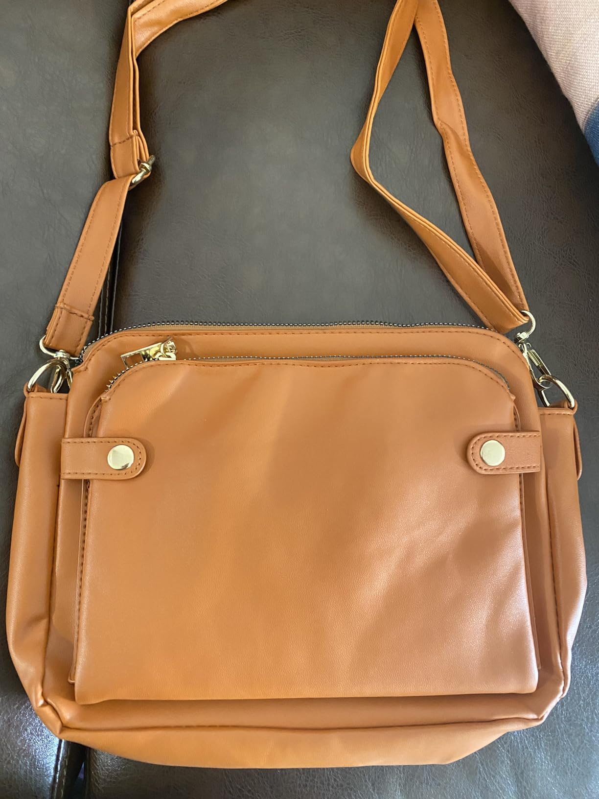 I was looking for a smaller size bag to carry just essential items while running errands so I ordered this one. I am surprised it has a lot of pockets and space to keep items. There are 3 zipper pockets and 1 button pocket. Additionally it also expands from the middle when the front 2 buttons are open and it has the card slots in there. The strap is adjustable and can be easily used as crossbody. I really love this bag—it’s not only practical and spacious but also stylish, and it has quickly become my go-to for daily errands.