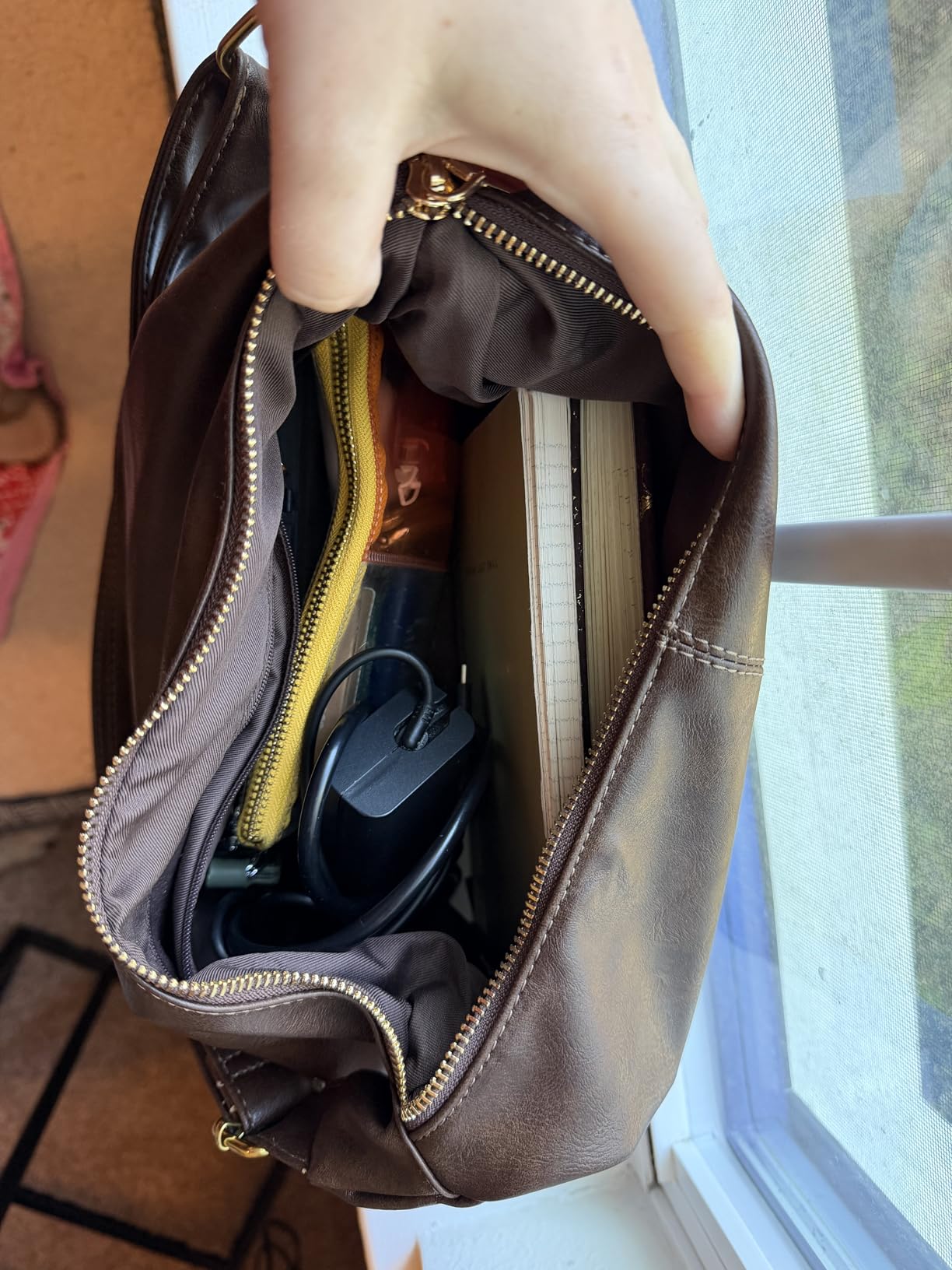 As a seamstress who works with real leather, I can instantly tell when a material feels cheap and this one truly doesn’t. The material is good quality, soft yet sturdy, and the stitching is neat and well-done. The zippers are excellent: strong, smooth, and they don’t get stuck at all, which is something I always inspect carefully. I’ve been using this bag every day and it has become one of my most practical pieces. It fits my phone, keys, a small makeup pouch, and other essentials without losing its shape. The adjustable strap is comfortable, and the inner pocket helps keep everything organized. For the price, it’s honestly a great buy.