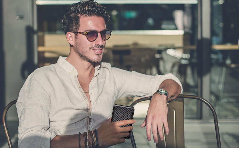 【MINIMALIST WALLET 】: We have chosen high quality materials for the wallet cover. Handmade high quality leather + carbon fiber texture.. The aluminum wallet chamber make of premium metal with a smooth eject pop up feature, using the latest ergonomic design, easy slide the side button of the metal wallet and get the neat pop-up cards.